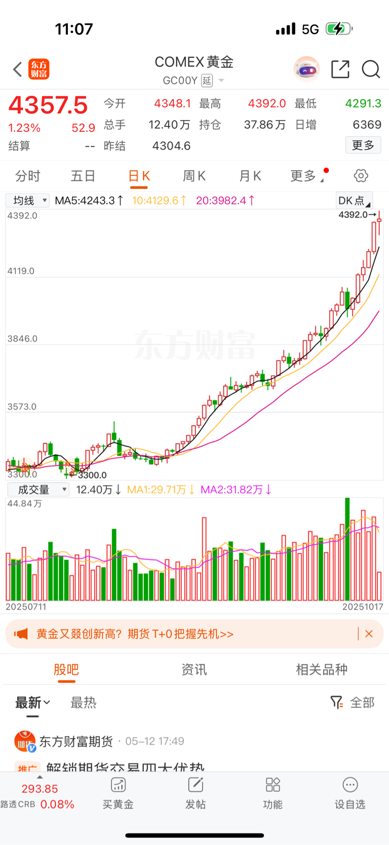 $四川黄金(SZ001337)$ 期货涨成这样。你走成这样?根本不敢加仓。因为这礼拜加了2次全部上当。人家期货回来了你是一去不复返