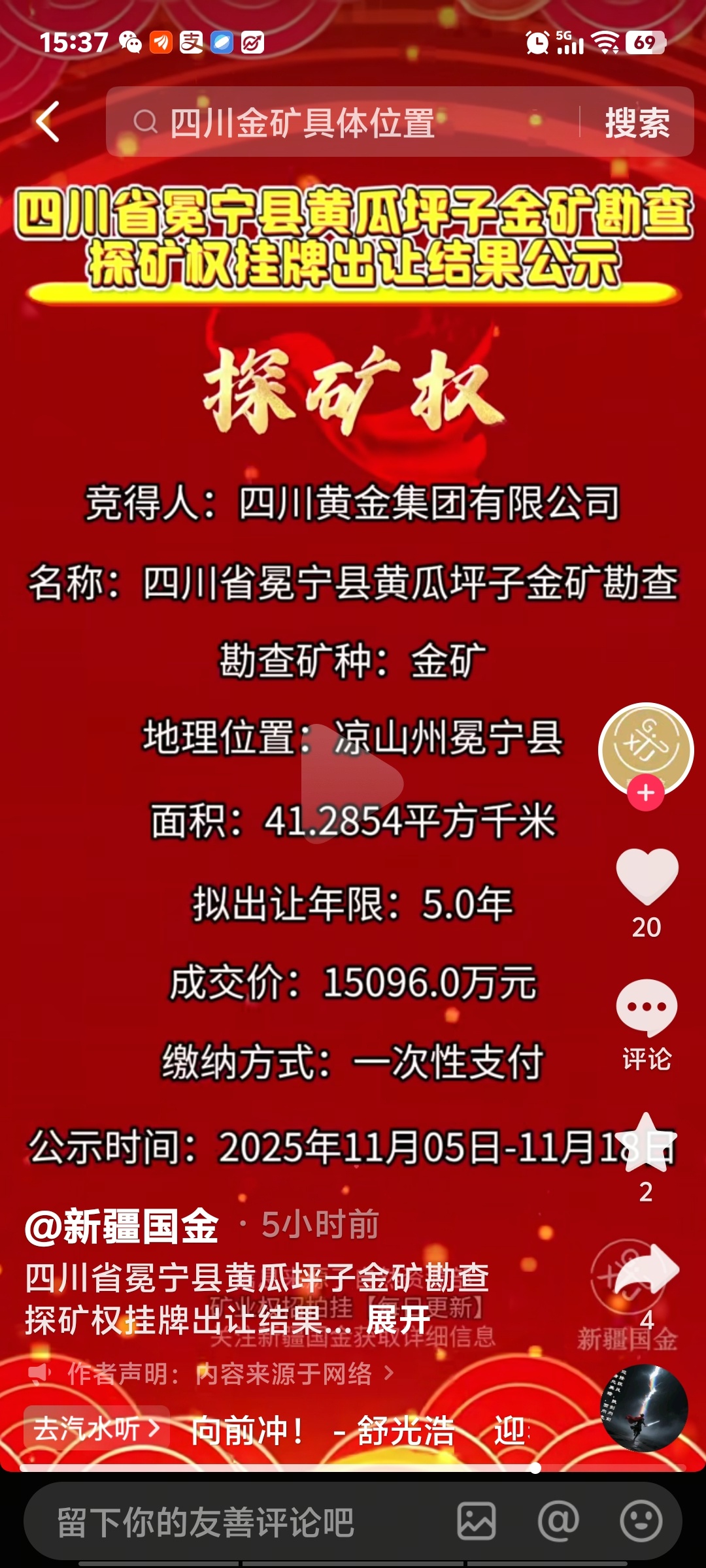 $四川黄金(SZ001337)$ 又得一处金矿 股价要翻倍了