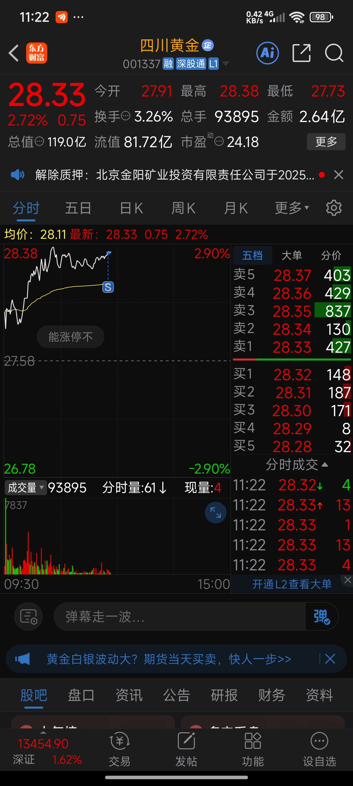 $四川黄金(SZ001337)$ 走了!换别的赤峰,中金黄金,晓程去了!碰到了这么笨蛋的傻庄倒霉蛋子!