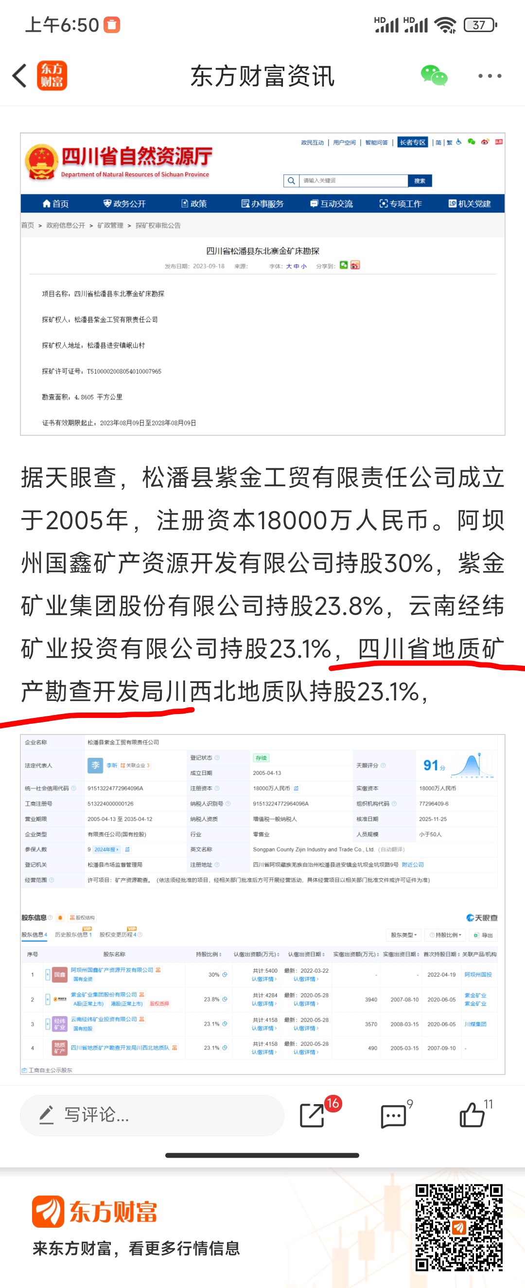 确定无悬念川娃的矿!第一二己是川国资委控股股东的!第三紫金矿业的也是川金股东!央