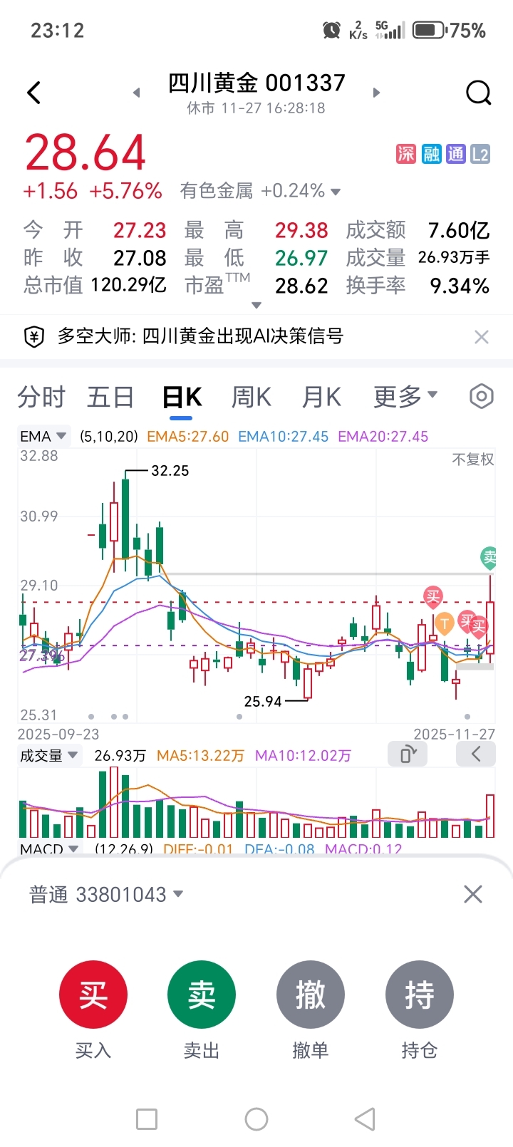 $四川黄金(SZ001337)$ 今天收盘卖了三分之一,先把成本压一下,拿在手上心里才稳