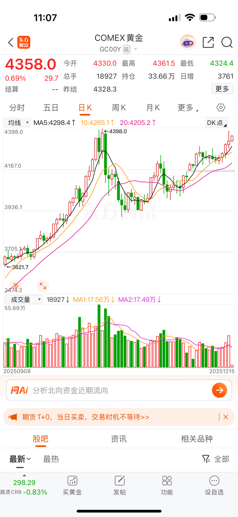 黄金期货稳的一匹。新高指日可待。再看看这里。摇摇欲坠。感觉随时要跳水