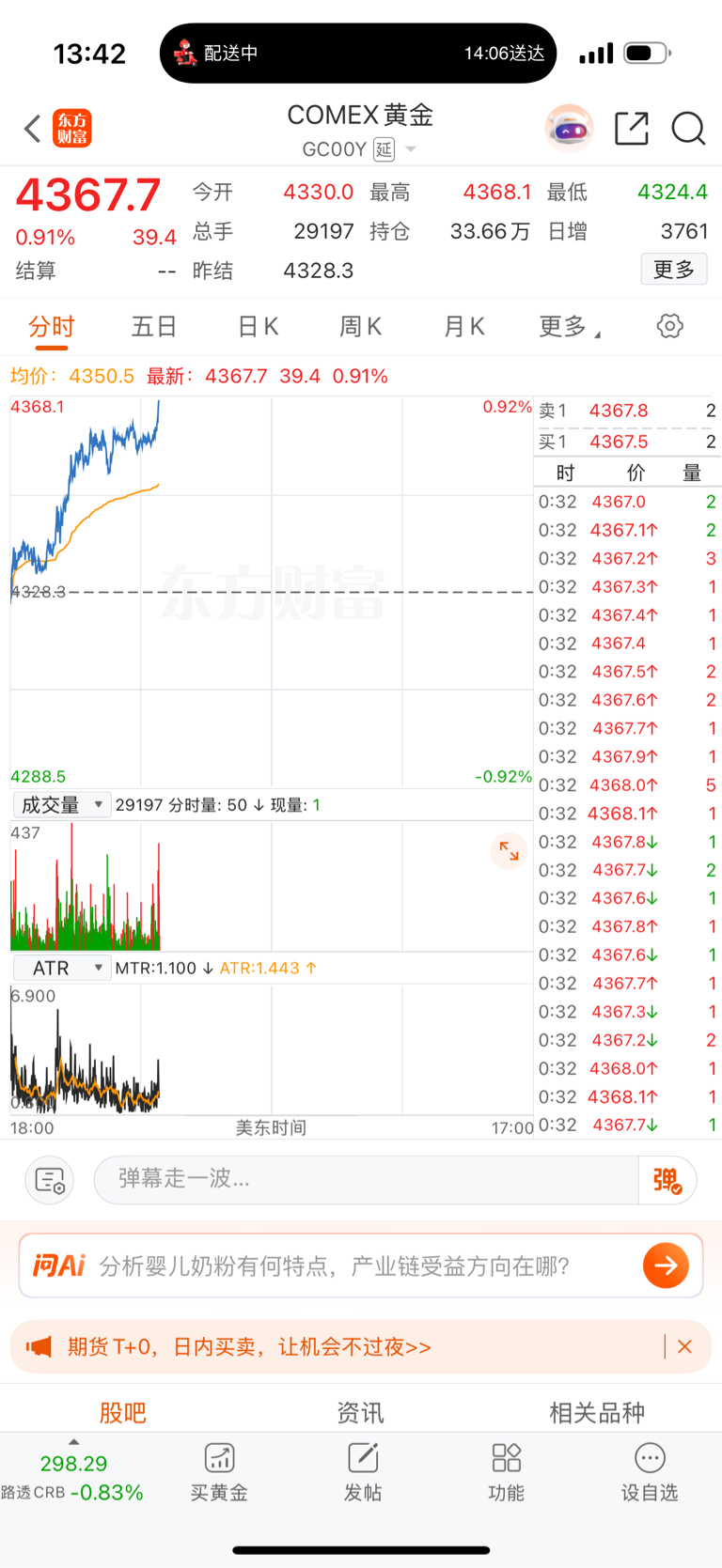 这种感觉有没有似曾相识?国庆节上来之后好几次这样了。黄金期货一直往上。黄金股莫名