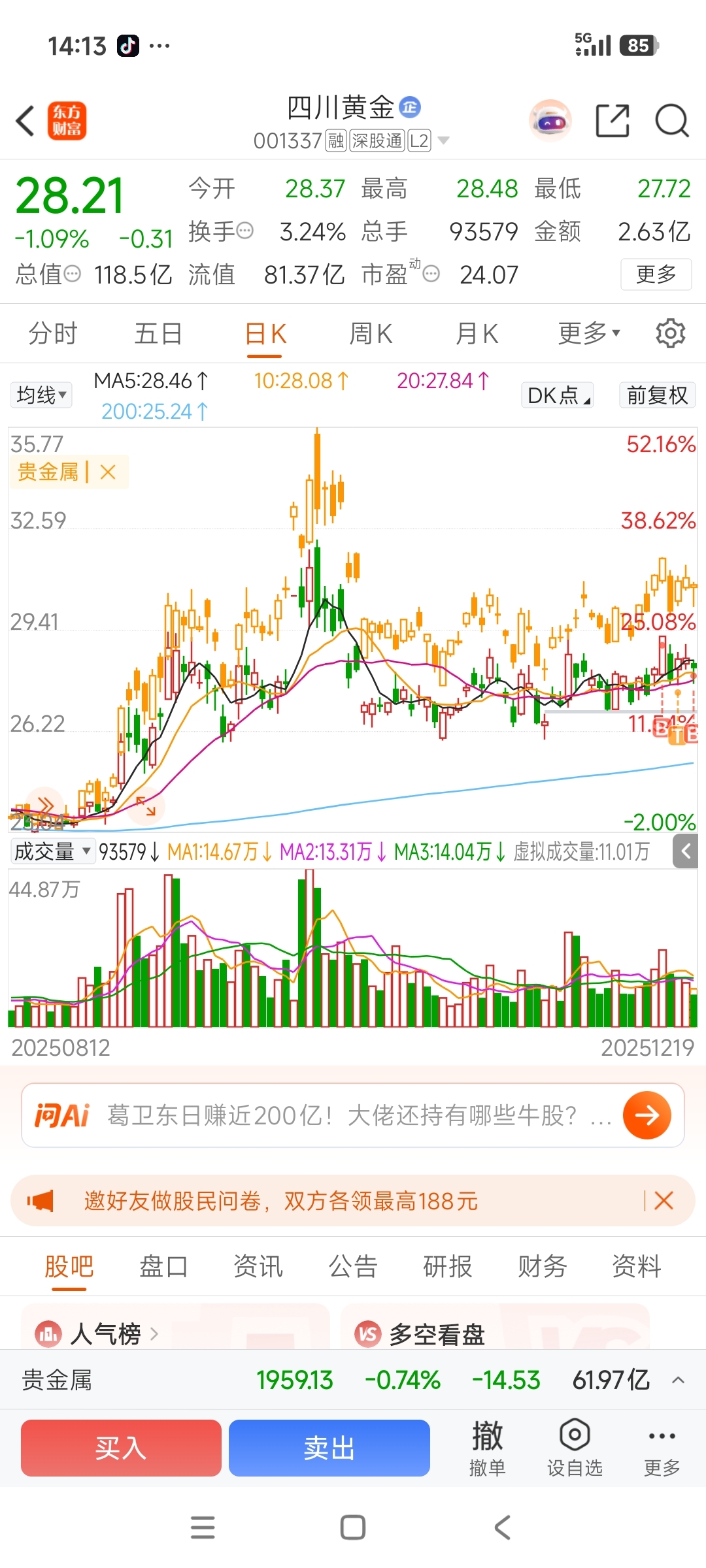 $四川黄金(SZ001337)$ 板块属性压制!笑死了。完全落后板块。