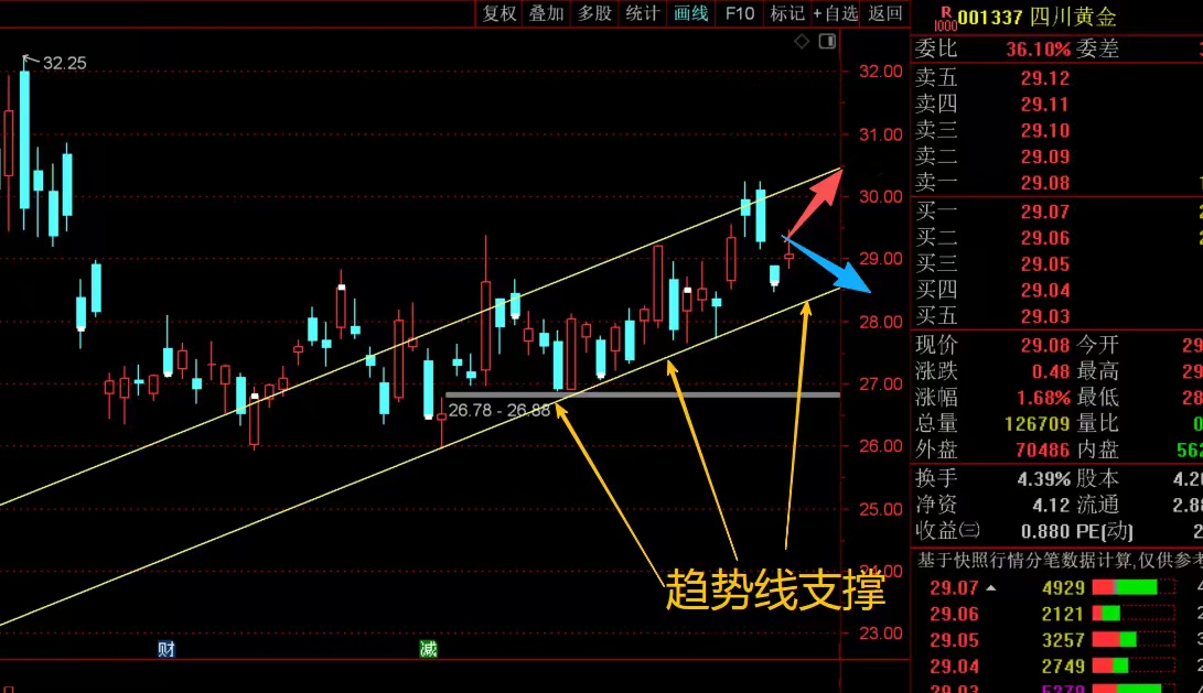 $四川黄金(SZ001337)$ 近期反弹走势还不错,一直是沿着上升通道逐步震荡上行,接下来就继续观察能否继续沿着通道上行,能就持仓等待,问题不大,但如果回落下来就要盯着通道下沿的支撑了,有效跌破就要注意控制仓位做防守,防着连续回落的风险。#炒股日记# #周末杂谈#