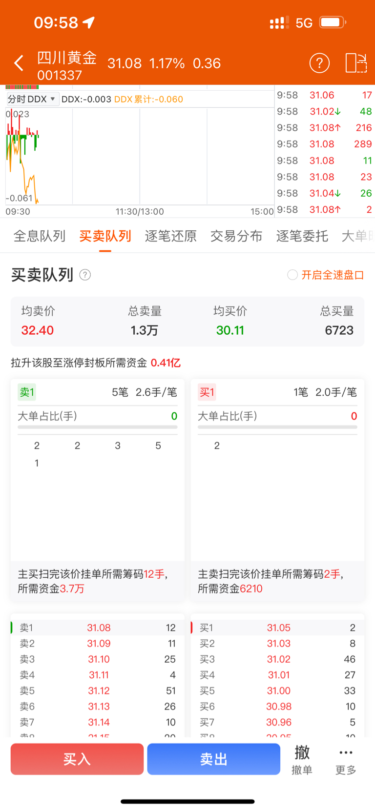 $四川黄金(SZ001337)$ 4000万就能扫完所有卖单