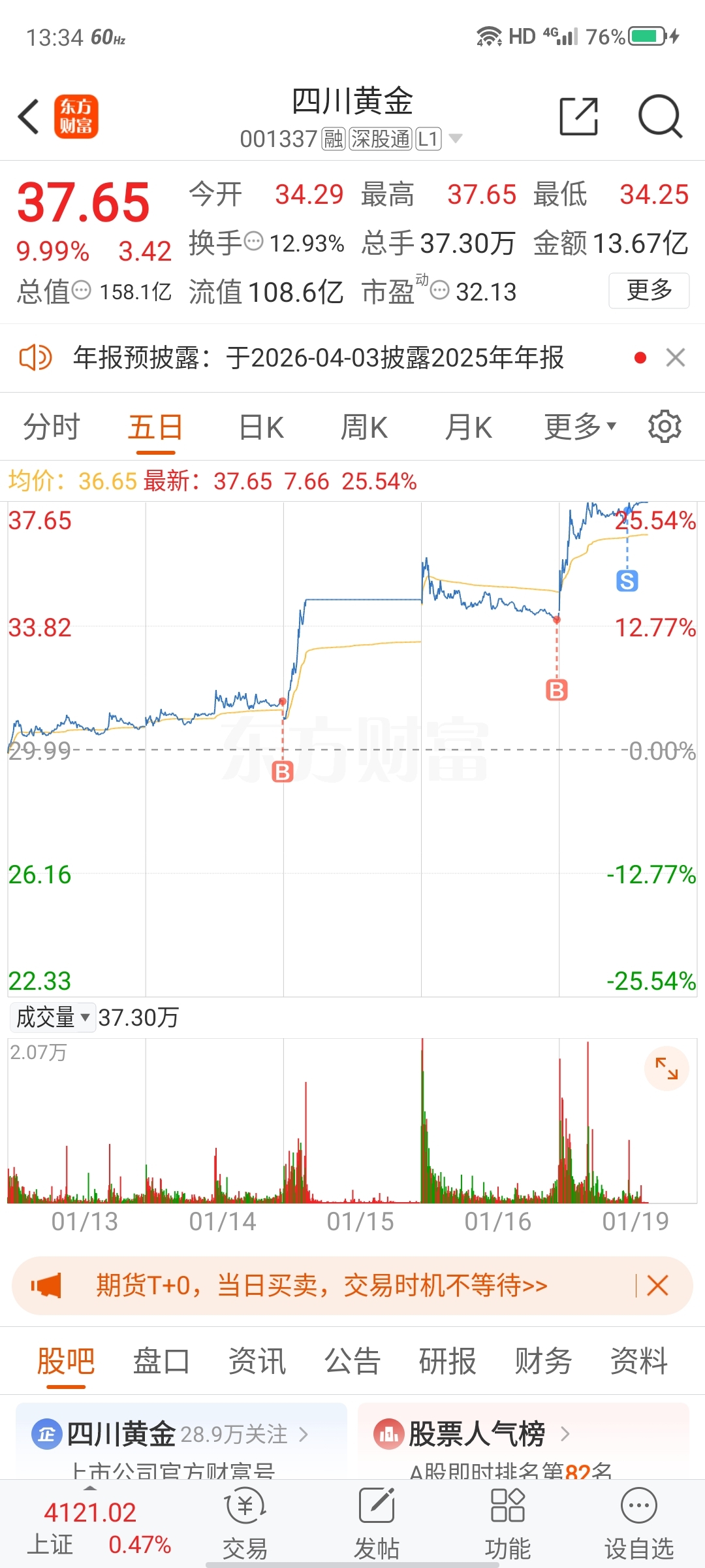 $四川黄金(SZ001337)$ 还想着尾盘买回呢,看样子进不去了,明后天再进