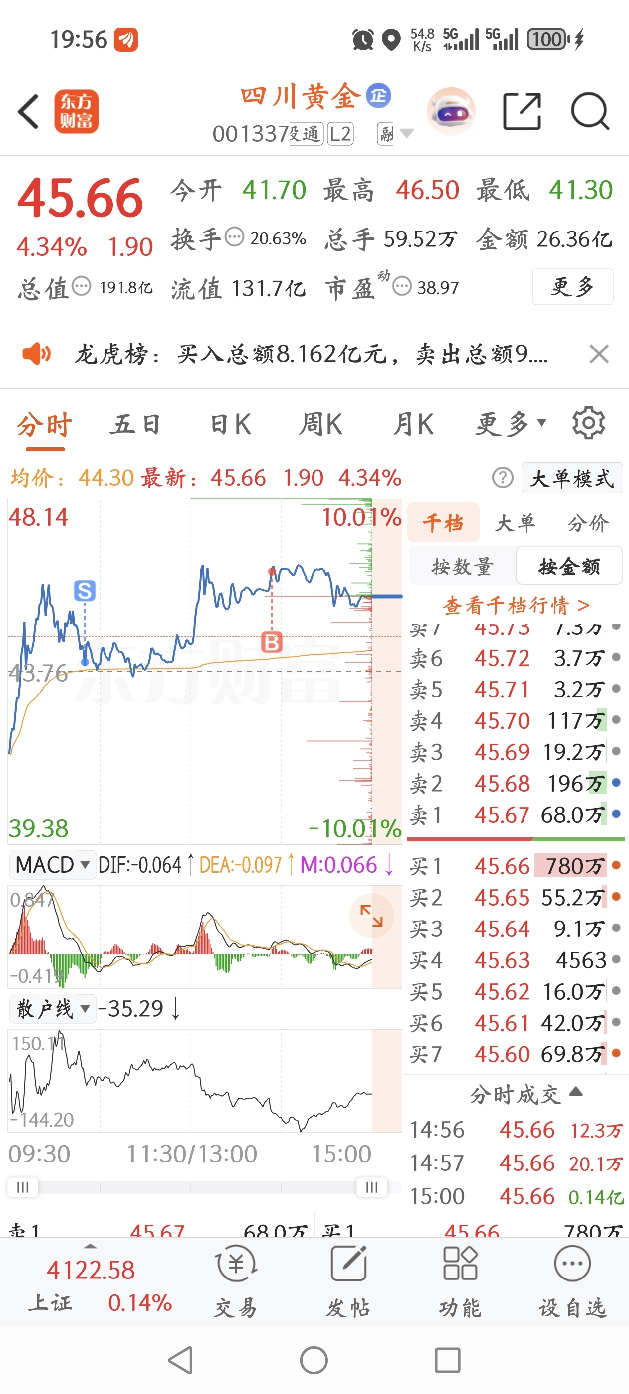 $四川黄金(SZ001337)$ #收盘点评# 脑抽了。上午被期货给忽悠了