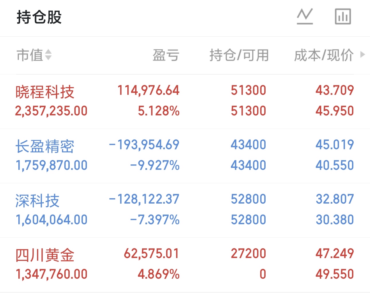 $四川黄金(SZ001337)$ 早盘在次接回,有望涨停$晓程科技(SZ300139)$ 让子弹再飞会$长盈精密(SZ300115)$ 深科技继续持有