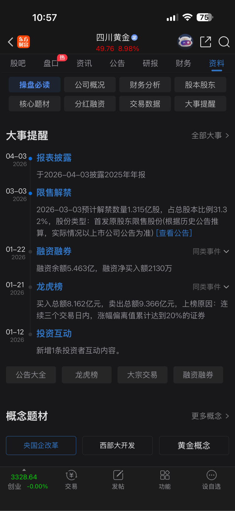 $四川黄金(SZ001337)$ 友情提示,3月3日有100亿的解禁股全解禁。
