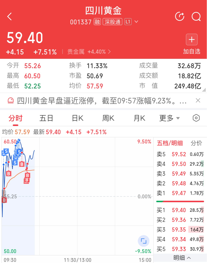 $四川黄金(SZ001337)$ 又是赚麻的一天!感谢!