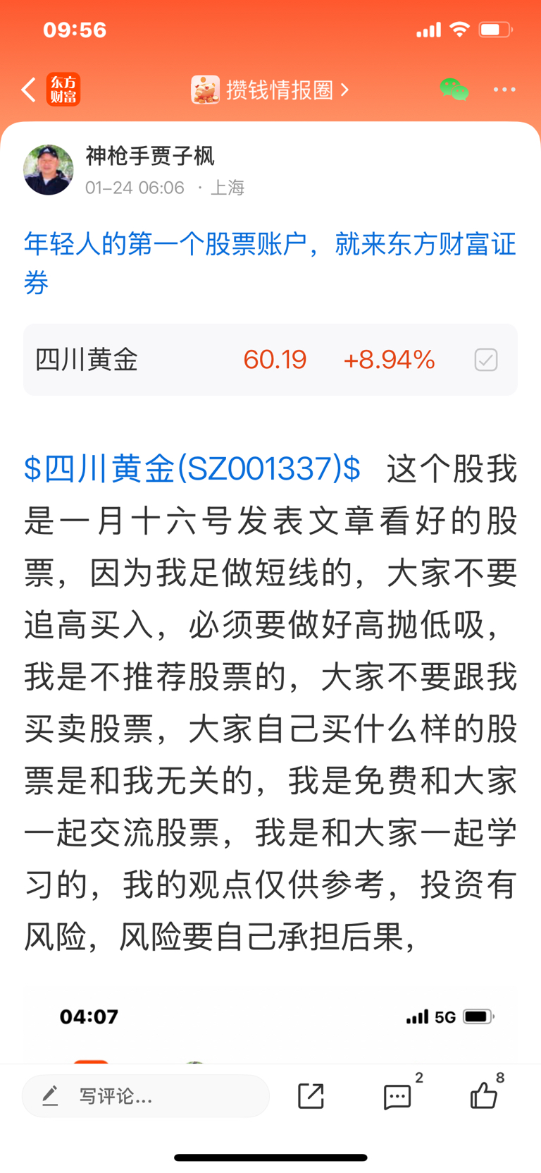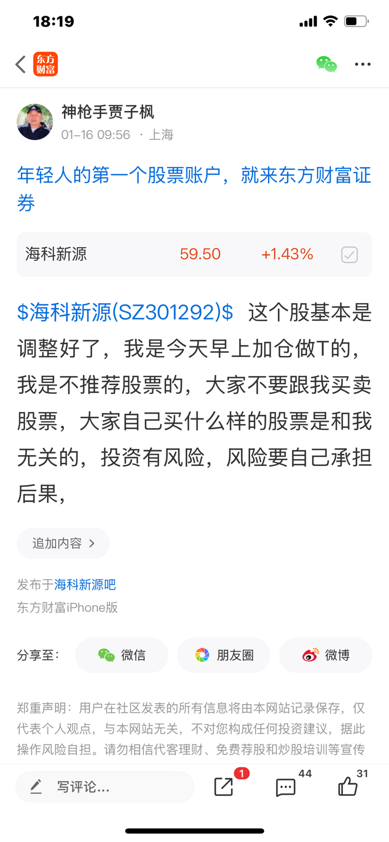 温馨提示: 1.根据《证券法》规定,禁止编造、传播虚假信息或者误导性信息,扰乱证券市场;2.用户在本社区发表的所有资料、言论等仅代表个人观点,与本网站立场无关,不对您构成任何投资建议。用户应基于自己的独立判断,自行决定证券投资并承担相应风险。《东方财富社区管理规定》