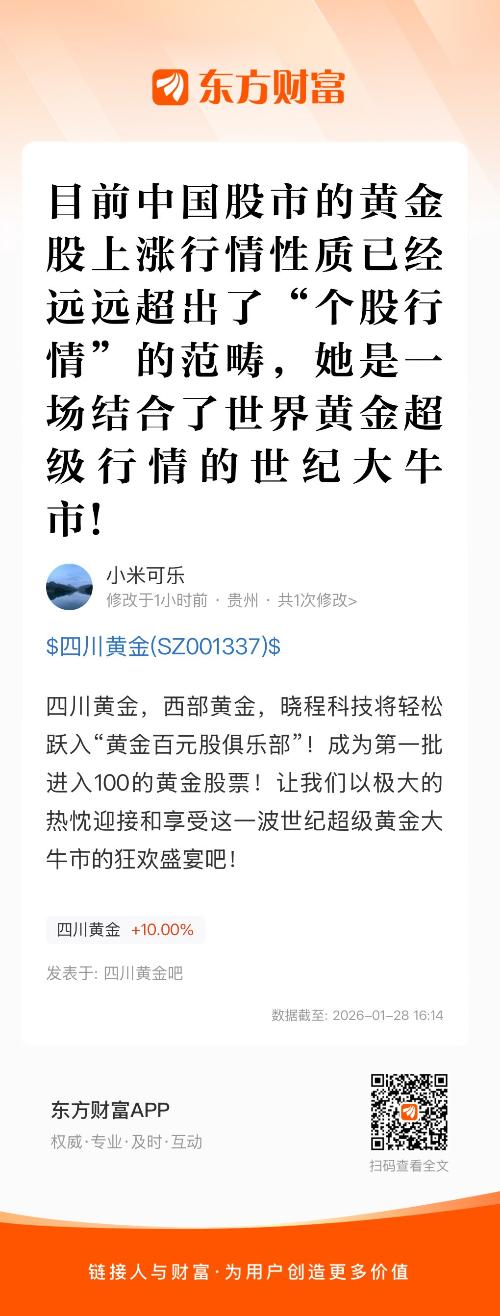 四川黄金,西部黄金,晓程科技将轻松跃入“黄金百元股俱乐部”!成为第一批进入100的黄金股票!让我们以极大的热忱迎接和享受这一波世纪超级黄金大牛市的狂欢盛宴吧!