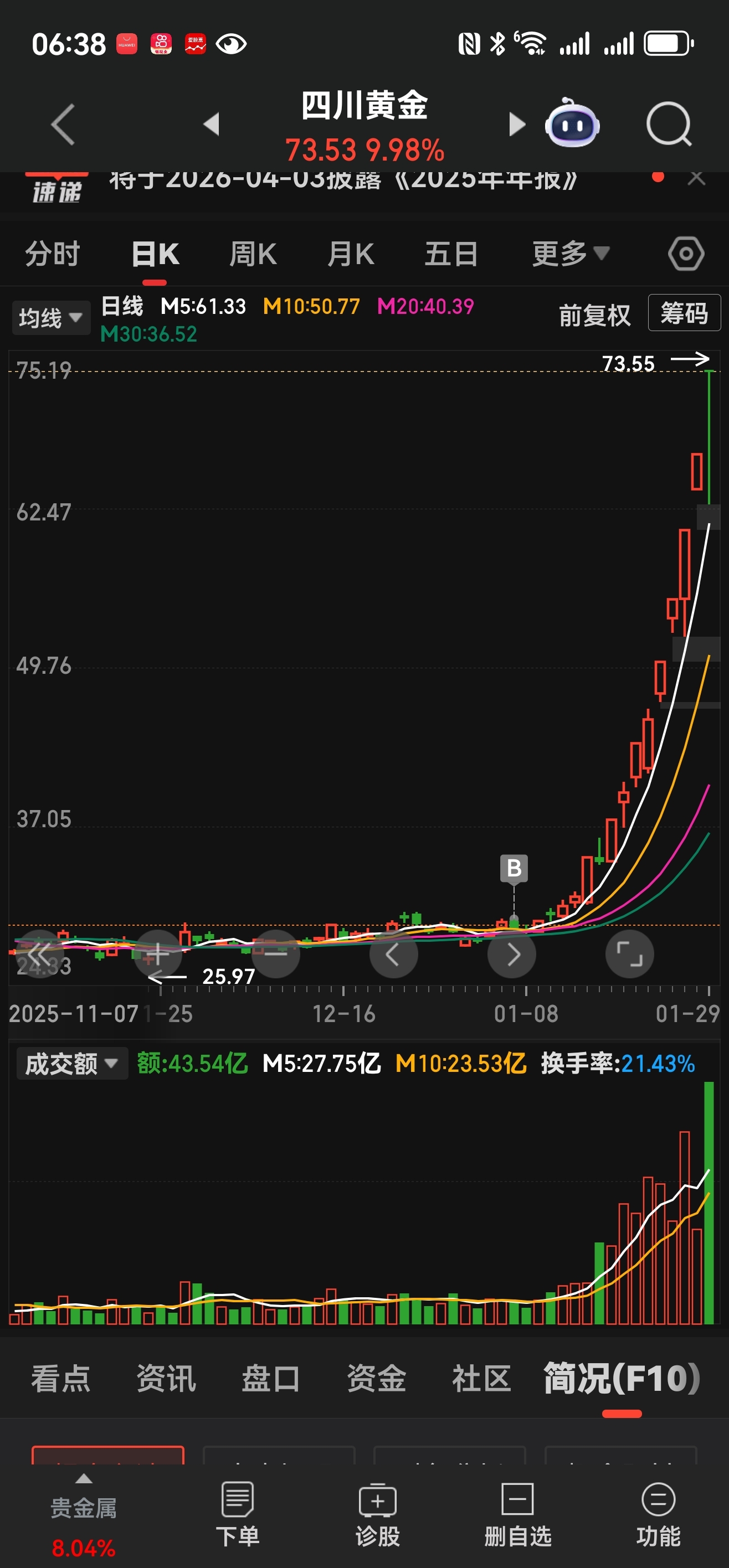 7号建仓。重仓四川黄金。