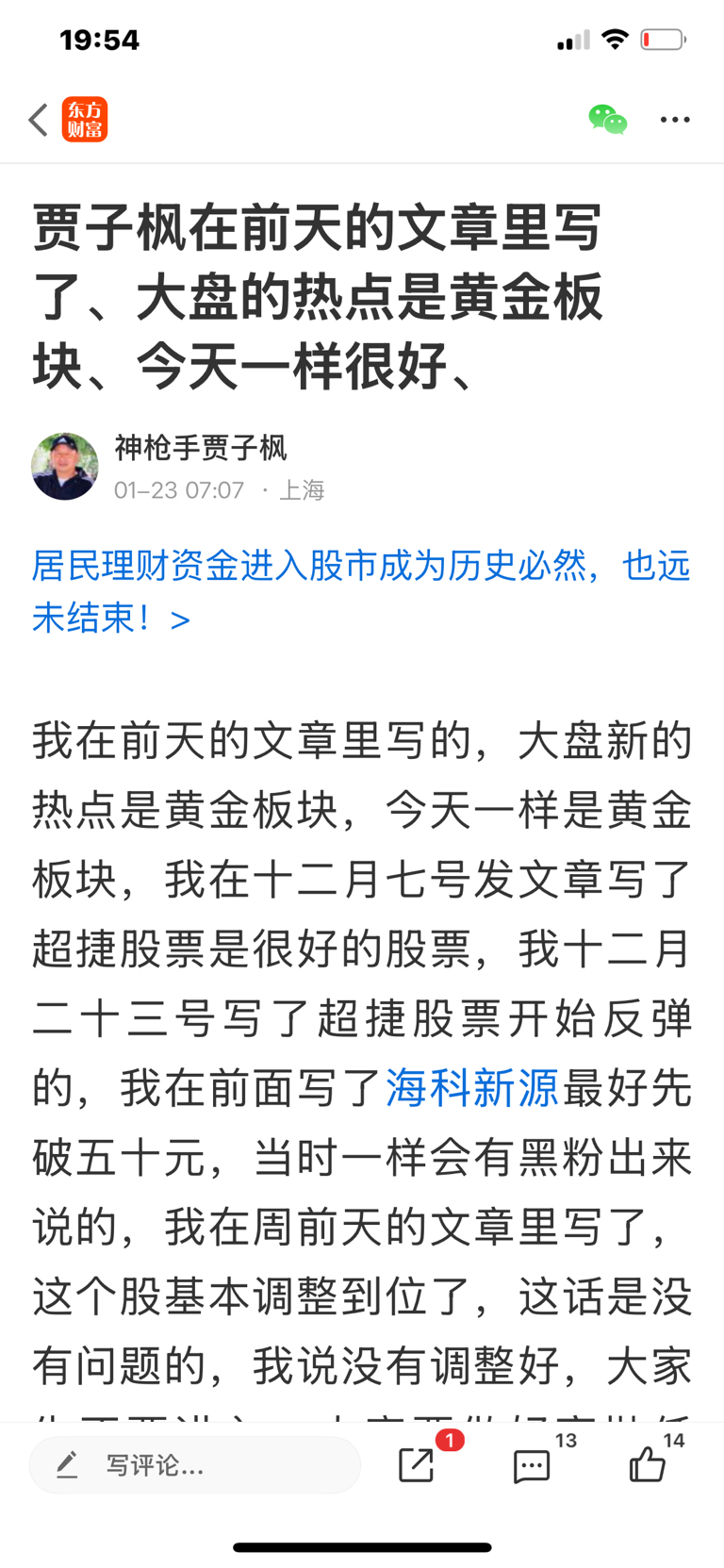这个股我是一个月十六号发表看涨的文章,大家不要追高买入,必须要做好高抛低吸,我是