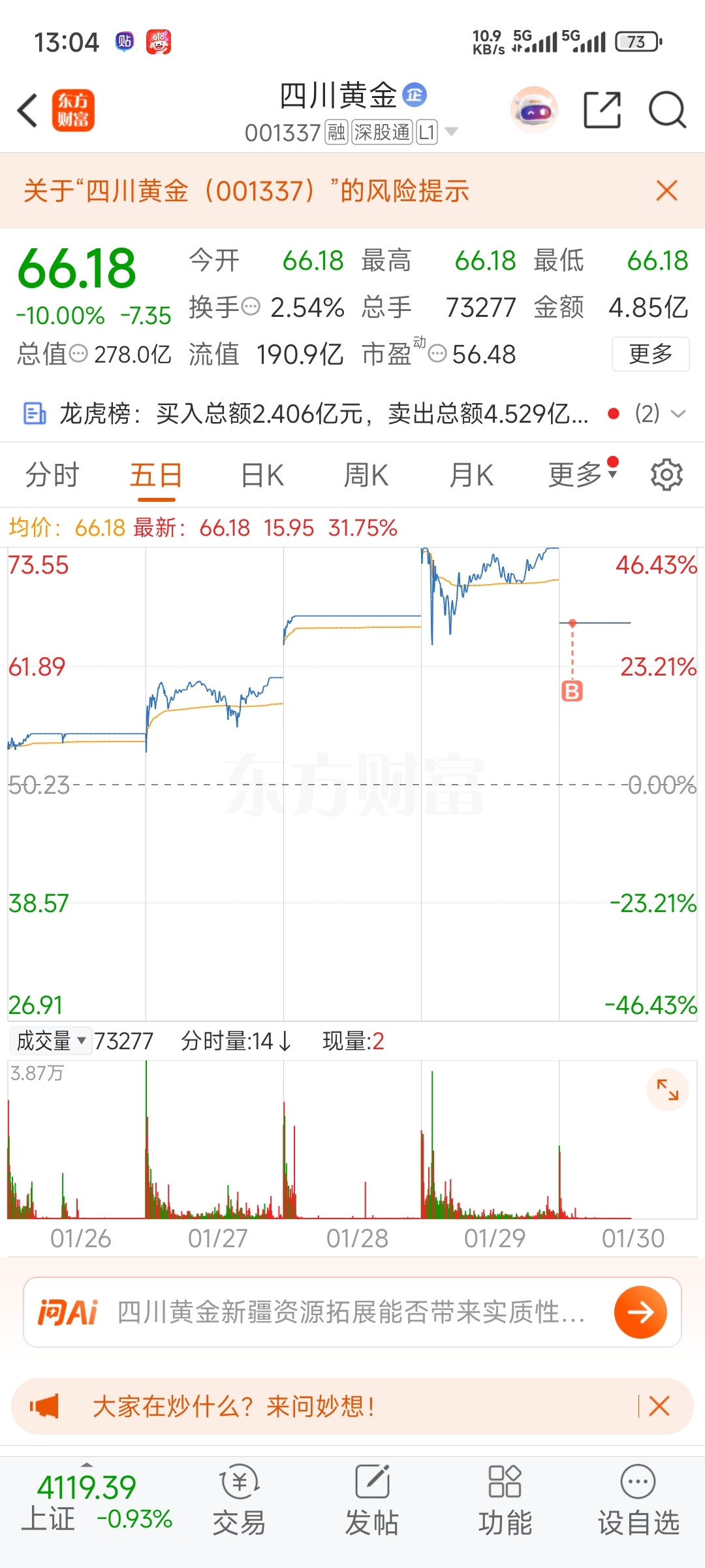 $四川黄金(SZ001337)$ 别人恐惧我贪婪