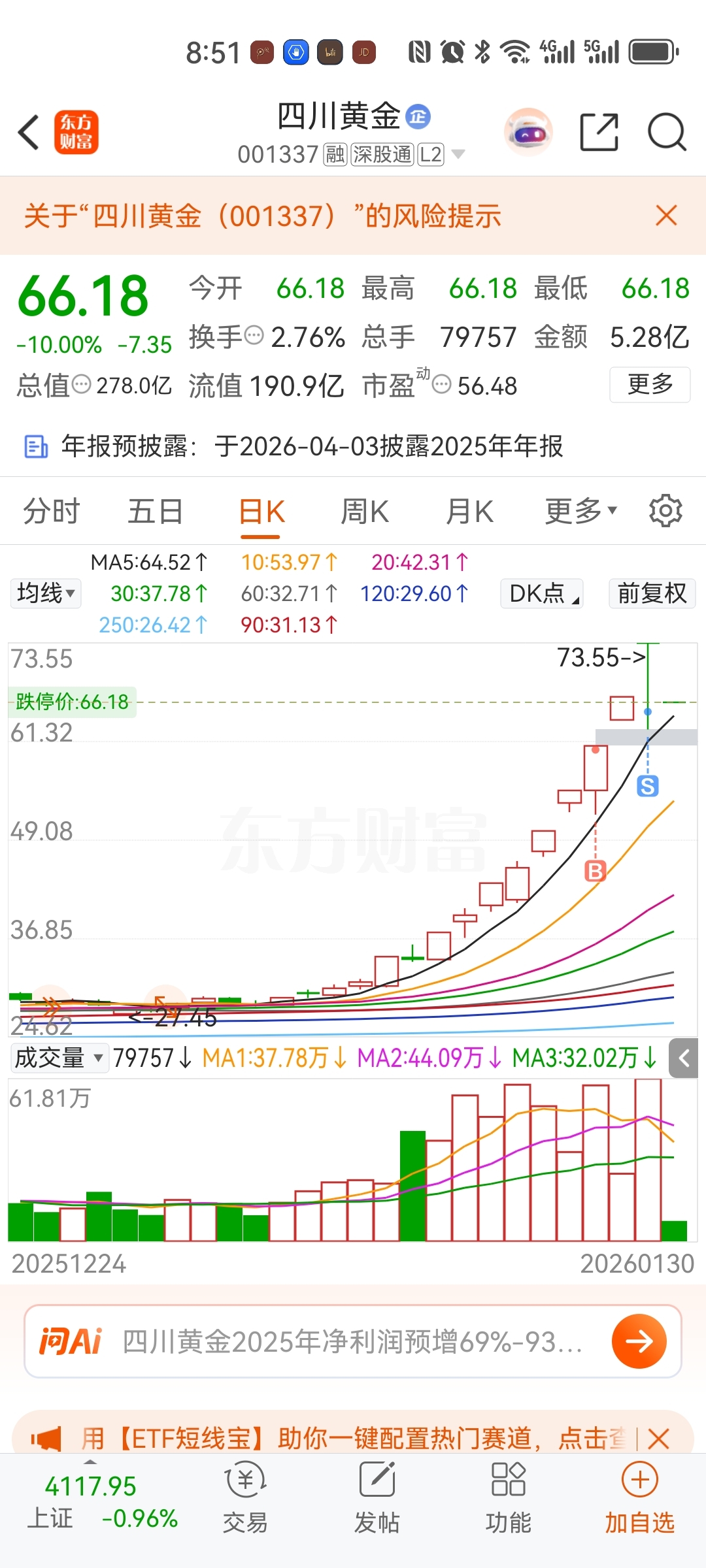 位置太高,就只能做短线快进快出,吃点溢价就走。