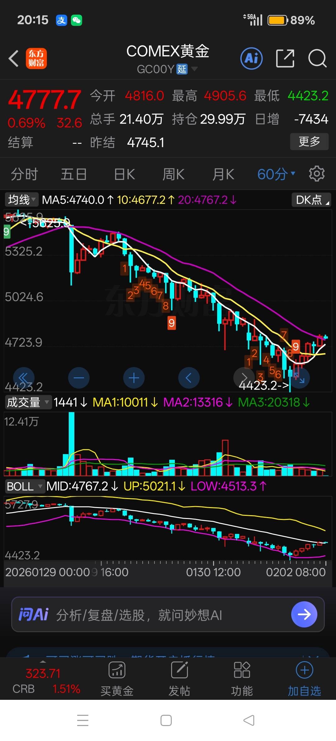 本次下跌以来,以60分钟为准,第一次站上布林轨中轨,反弹基本上稳了!