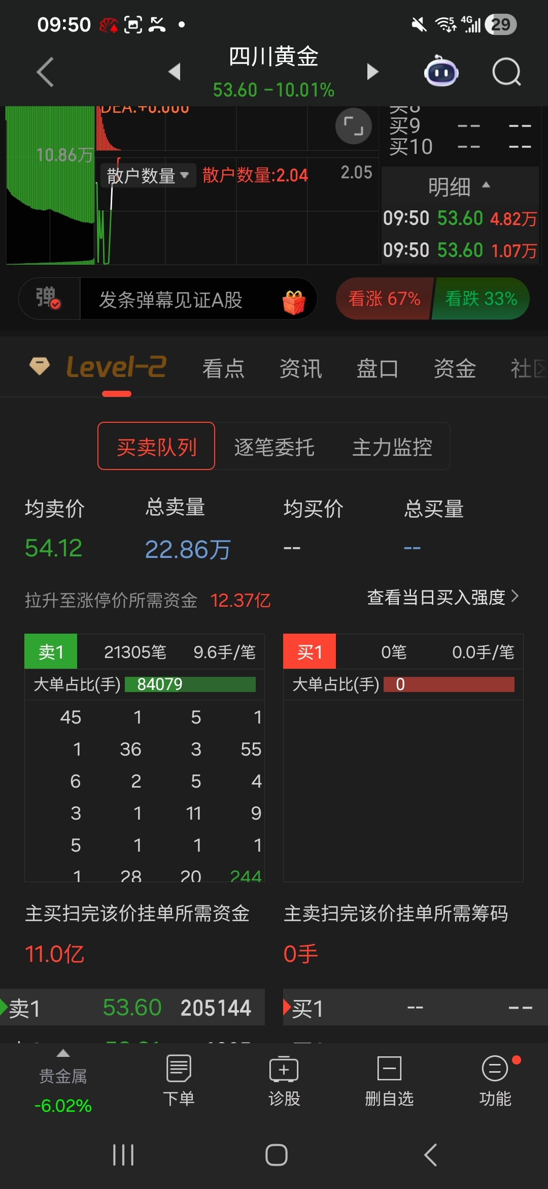 $四川黄金(SZ001337)$ 天天骂主力的,评论区里还吵吵着为什么还不开,自己过来看看,全都是散户们自己的小单子在踩踏,这么好的开板机会。居然现在还在追加封板,明知道出不去。也非要挂上,反正我是没有挂,真的跟这些S同车才是最大的不幸