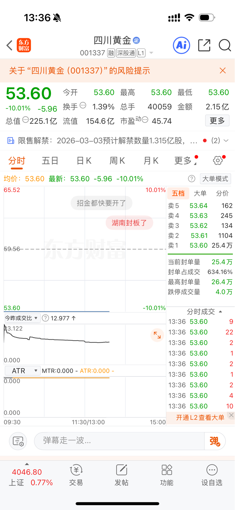 $四川黄金(SZ001337)$ 70买的 现在可不可以再在低谷买进哪位大神给指导一下