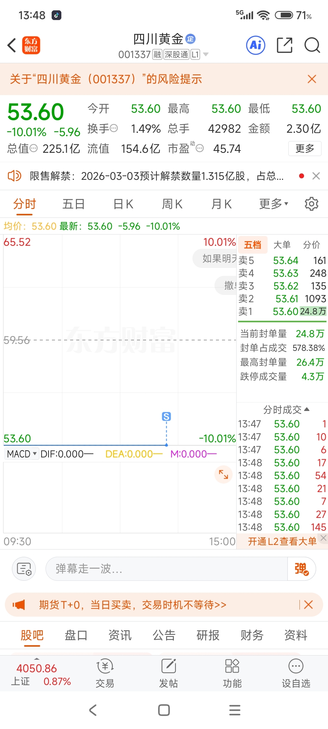 $四川黄金(SZ001337)$ 昨天晚上八点半挂单的不要急可以跑的,我已经跑出来了。