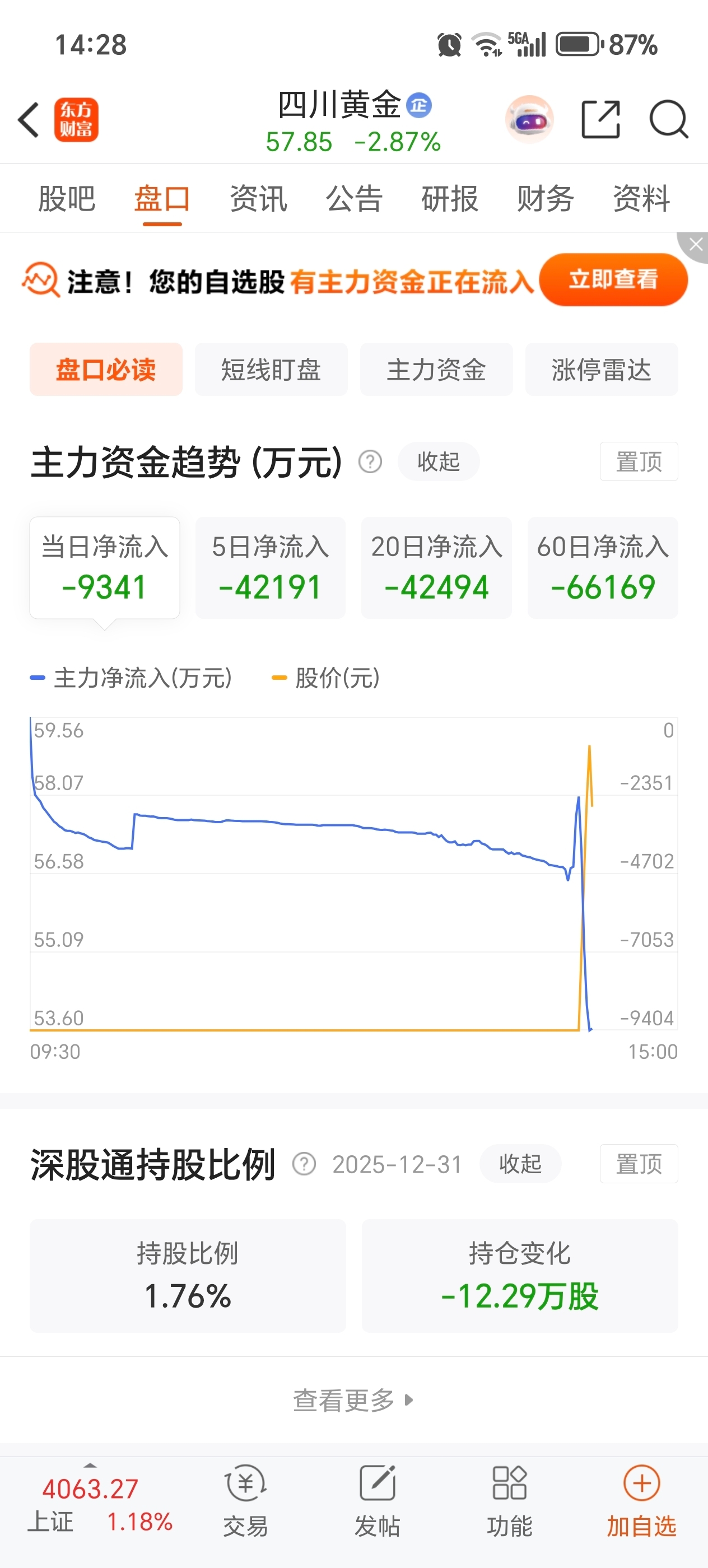 $四川黄金(SZ001337)$ 量价背离,跑就是了