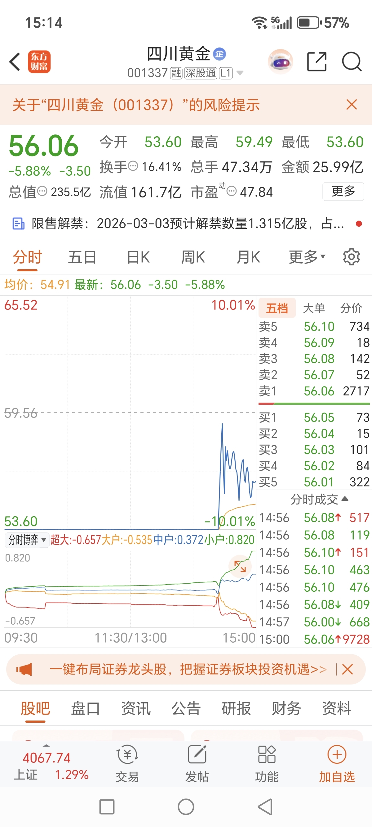$四川黄金(SZ001337)$ $招金黄金(SZ000506)$ $上证指数(SH000001)$ 我一朋友在跌停板上割肉卖出,结果又追高买进来了