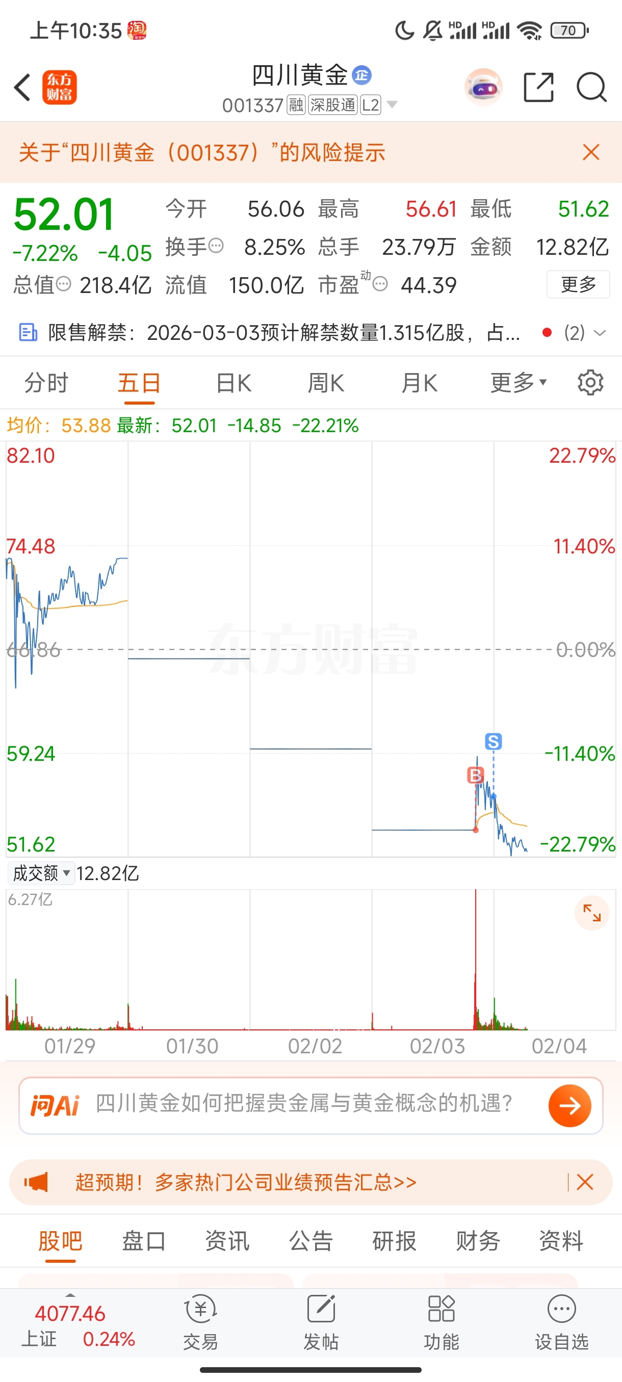 $四川黄金(SZ001337)$ 还好跑得快。要不然得被他套在里面。