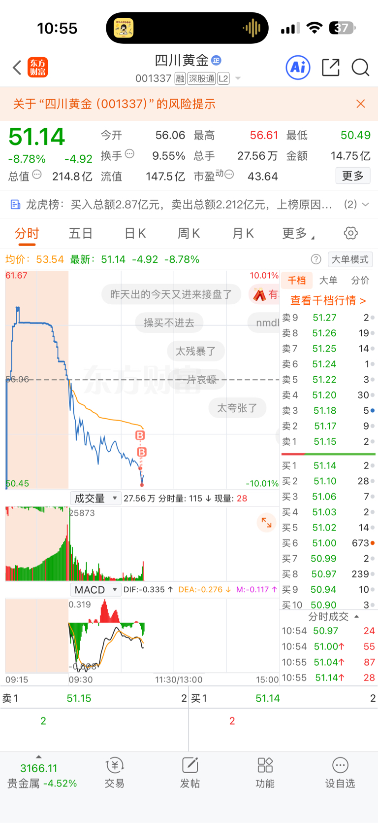 $四川黄金(SZ001337)$ 一般我抄到底 当天不涨 次日会涨