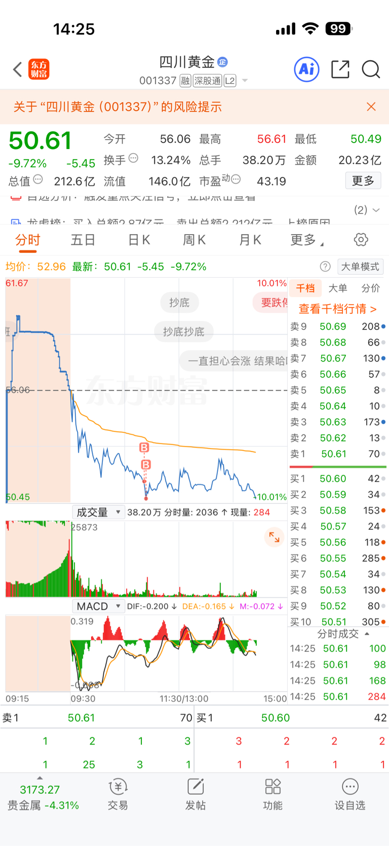 $四川黄金(SZ001337)$ 好家伙全埋 主力你胆子变大了