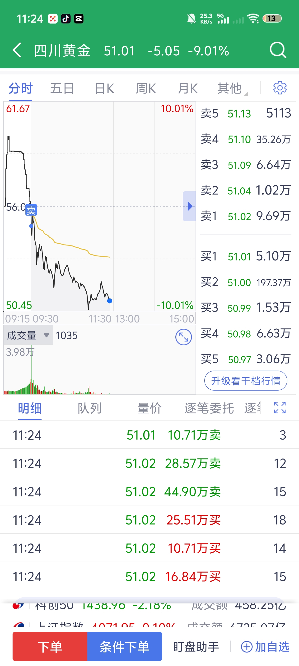 $四川黄金(SZ001337)$ 韭菜们!昨天跌停抄底!早上赚钱送给你们了!