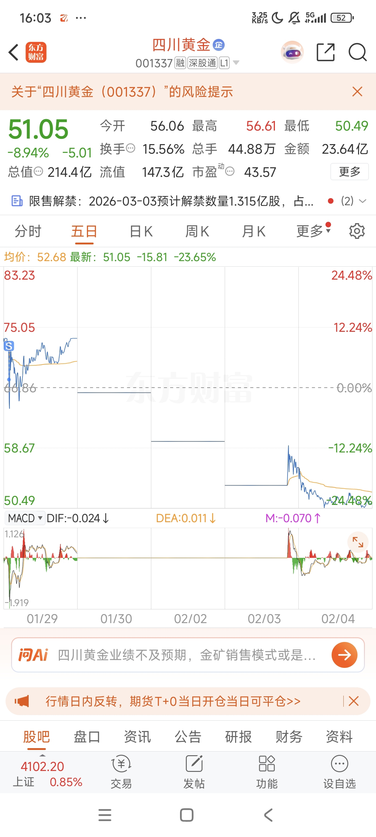$四川黄金(SZ001337)$ 明天低开就是地天