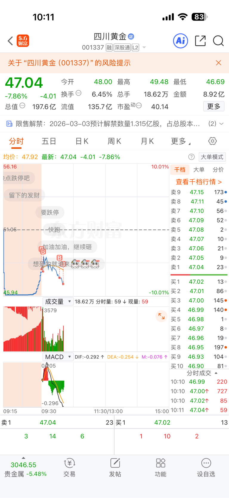 $四川黄金(SZ001337)$ 主力别杀我 我没钱了