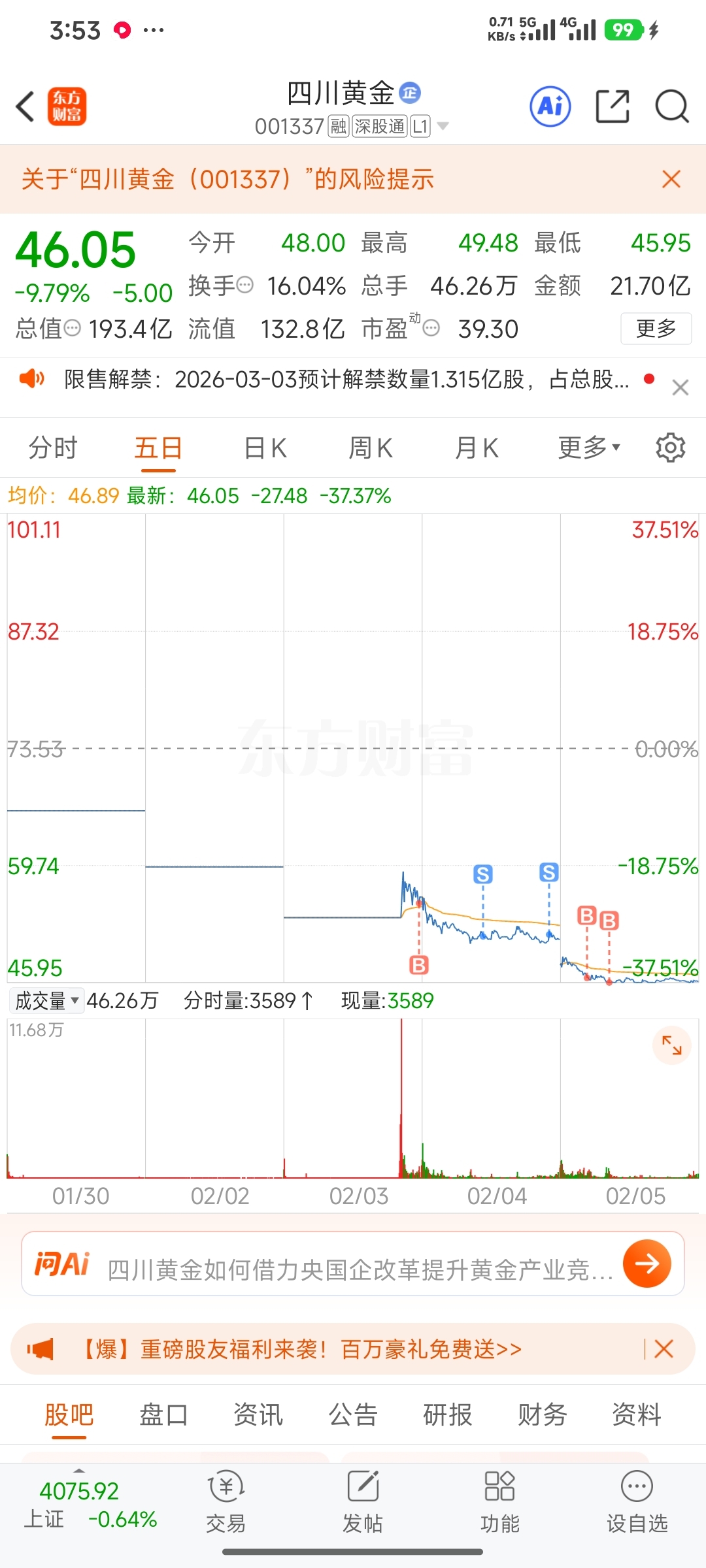 $四川黄金(SZ001337)$ 我这是玩的撒?
