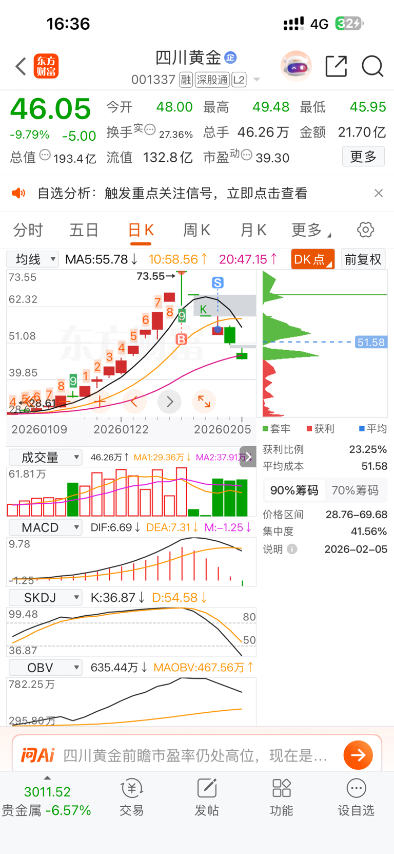 $四川黄金(SZ001337)$ 股票跟黄金期货可不沾边