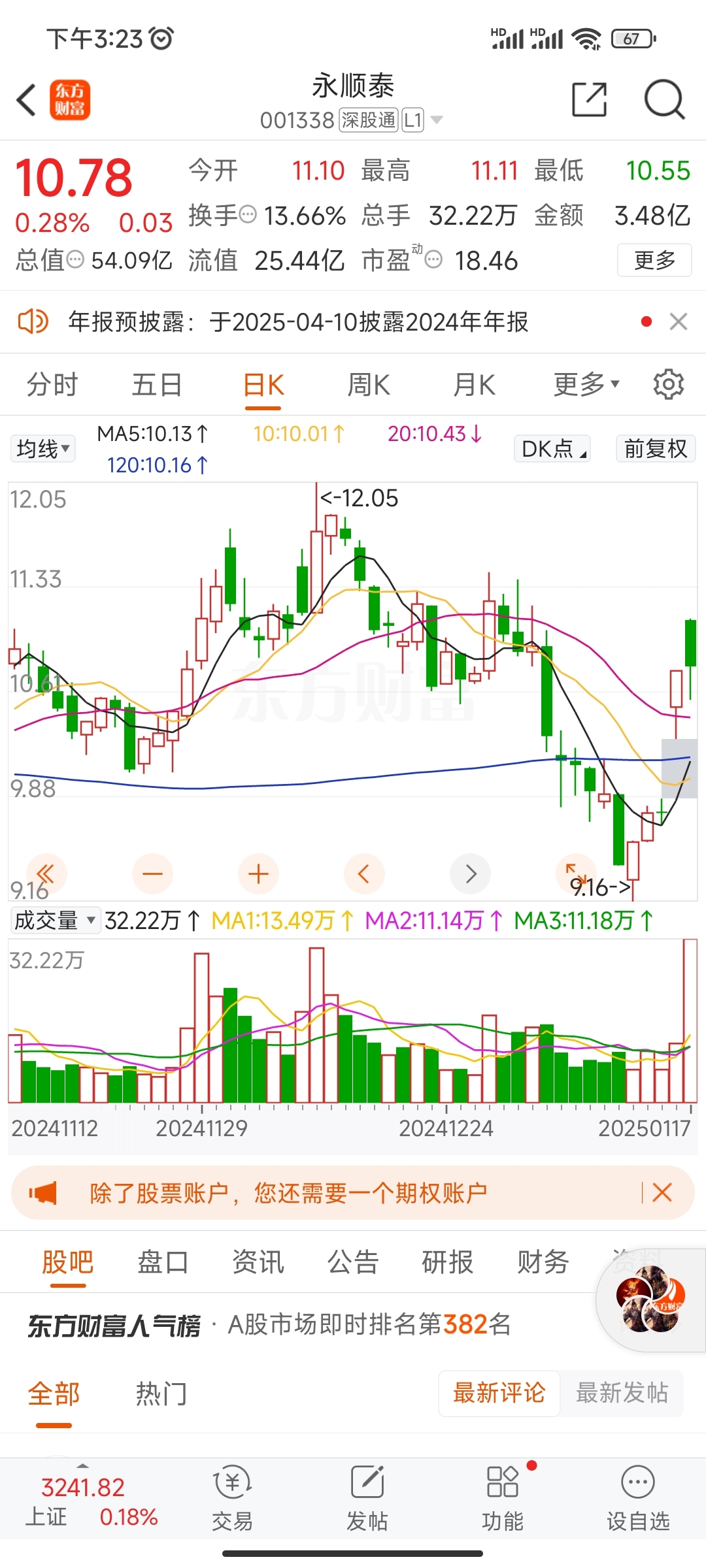 $永顺泰(SZ001338)$ 这垃圾今天乌云盖顶放巨量滞涨,下周又要阴跌回去补9.77元缺口了,它有个特点涨不过版块跌却领跑,大家看看它的年线,除了上市那一年涨,之后就年年跌,它的业绩却年年增长,它是典型的上市为了卖公司的垃圾股,大家注意安全了