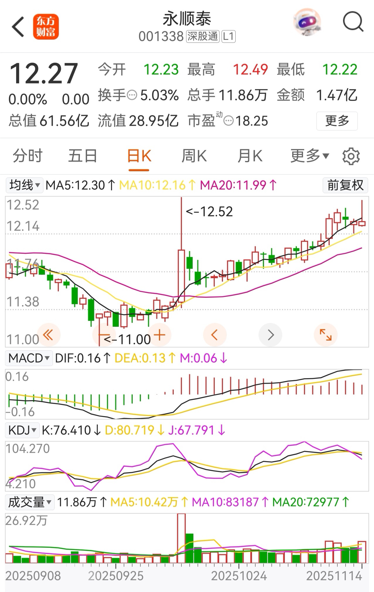 $永顺泰(SZ001338)$ 下周个人操作计划若下跌则沿10日均线、20日均线附近低吸做T。有效击破20日均线则就地卧倒,等待机会。对中长线持有永顺泰持乐观态度。