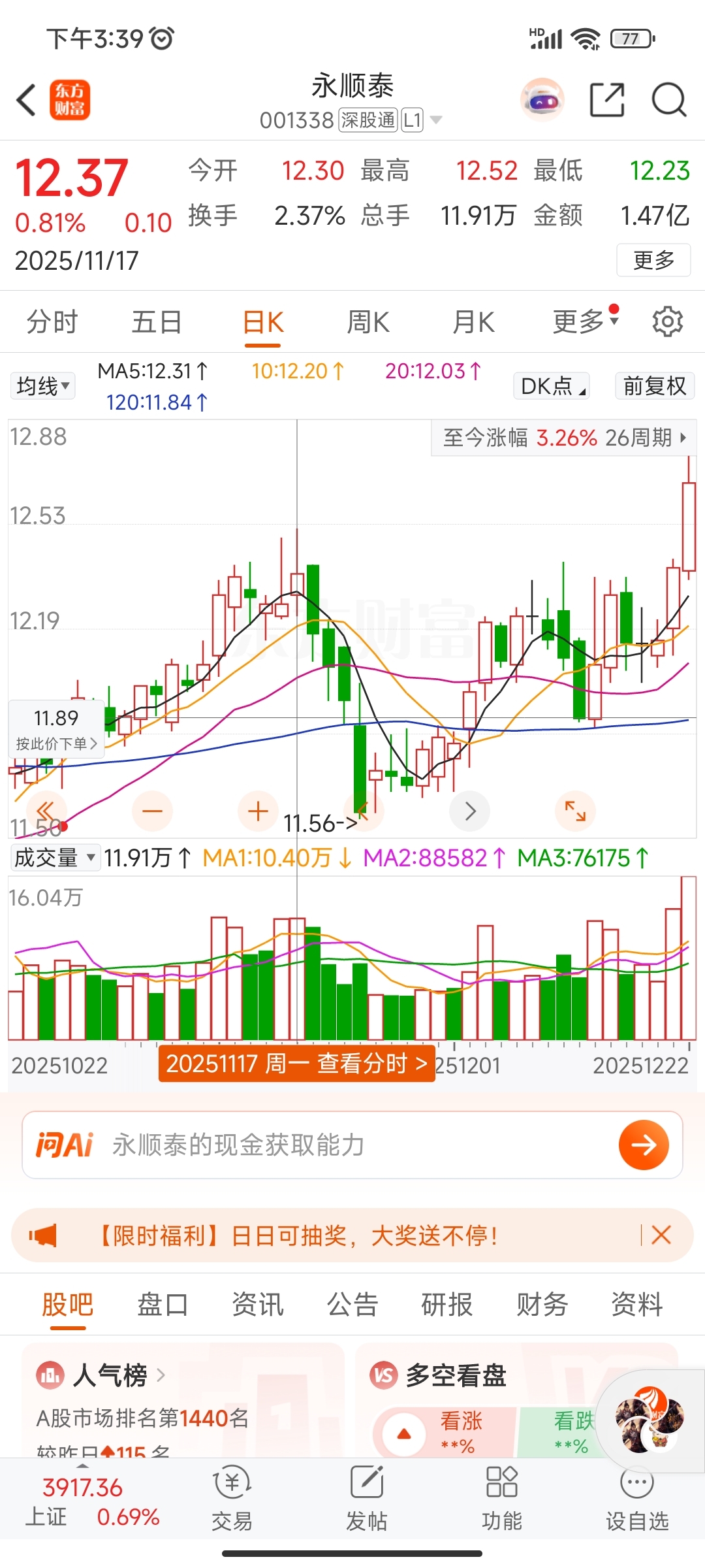 $永顺泰(SZ001338)$ 又是放量冲高回落套韭菜,收那么长的上影线明天继续砸盘套韭菜,新进来的韭菜注意安全了