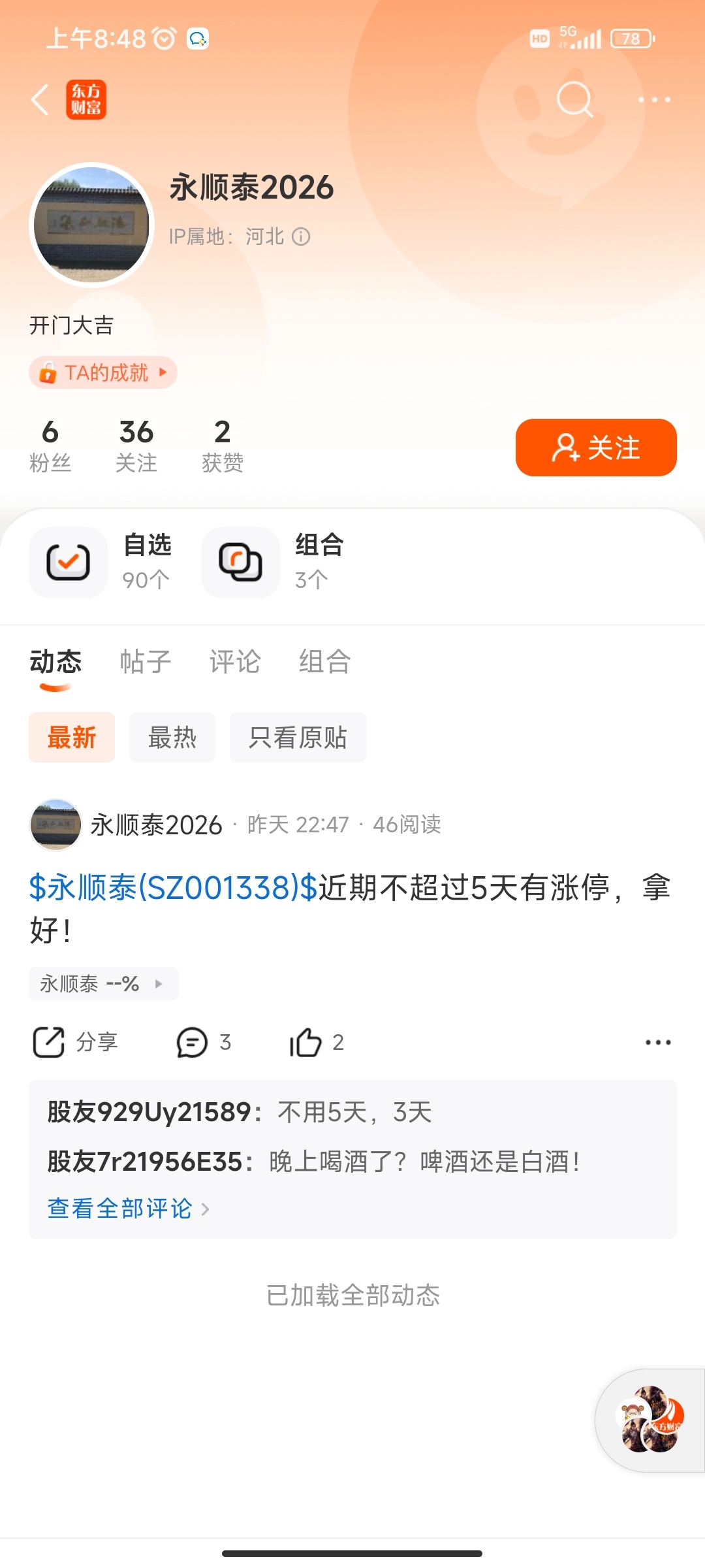 这托只发唯一一个帖子就是吹永不顺涨停,真的用心良苦了