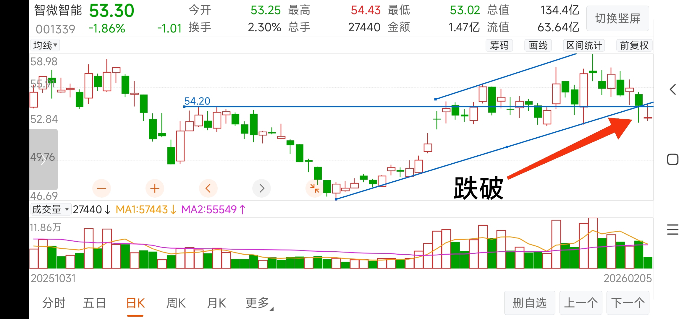 $智微智能(SZ001339)$ 盘中脉冲上涨,但未能在横线之上立住,认输出局。择机看有无再入可能。