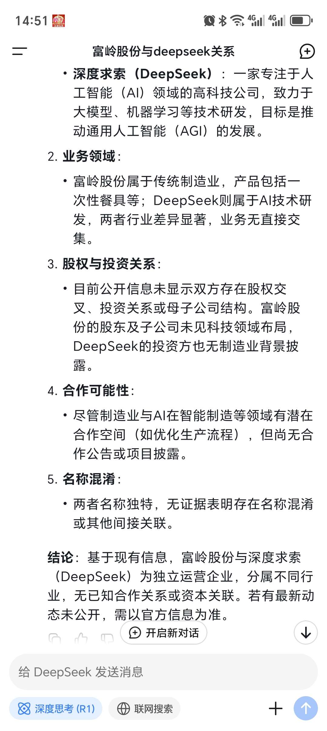 目前没有公开资料显示富岭股份通过旗下基金参与了DeepSeek的天使轮和Pre - A轮融资并持有其14%的股份。