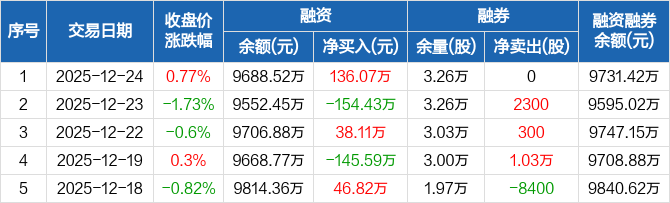富岭股份:融资净买入136.07万元,融资余额9688.52万元(12-24)