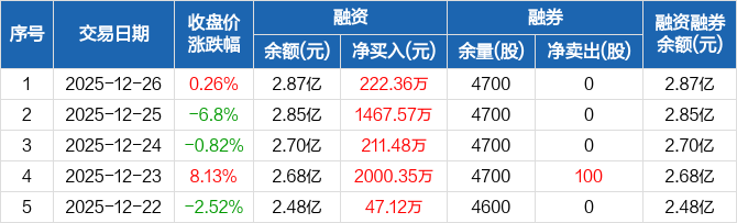 平安电工:融资余额2.87亿元,创历史新高(12-26)