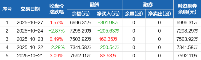 南矿集团:融资净偿还301.98万元,融资余额6996.31万元(10-27)