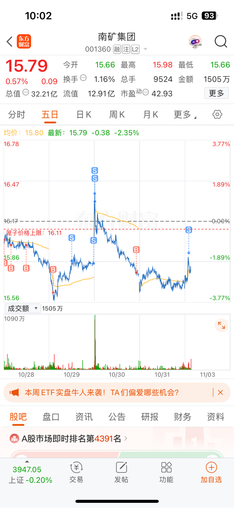 $南矿集团(SZ001360)$ 精准的高抛低吸
