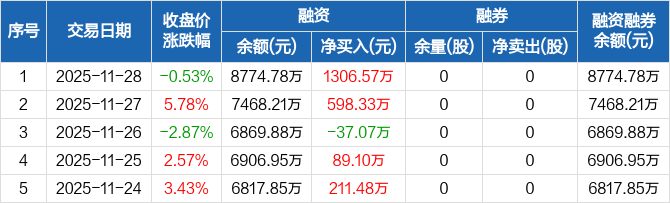 南矿集团:融资净买入1306.57万元,融资余额8774.78万元(11-28)