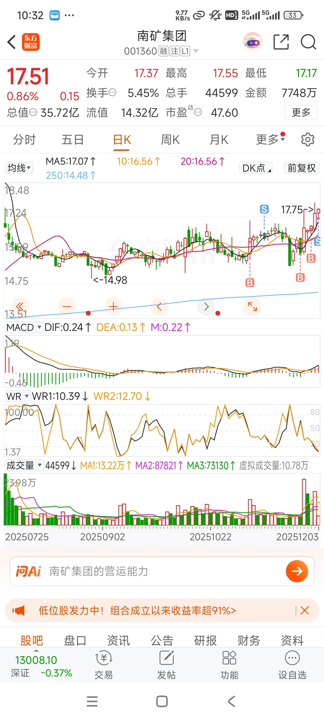 $南矿集团(SZ001360)$ 让我两次吃肉跑路,感谢主力