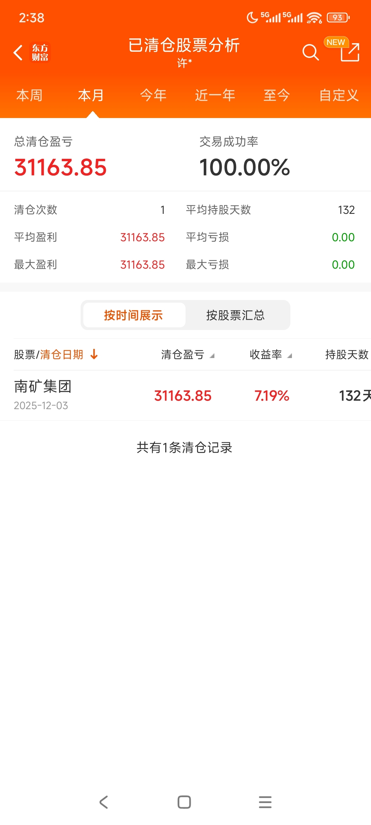 清仓清仓,拿了四个接近五个月,这个利润可以了,小富即安,很满足