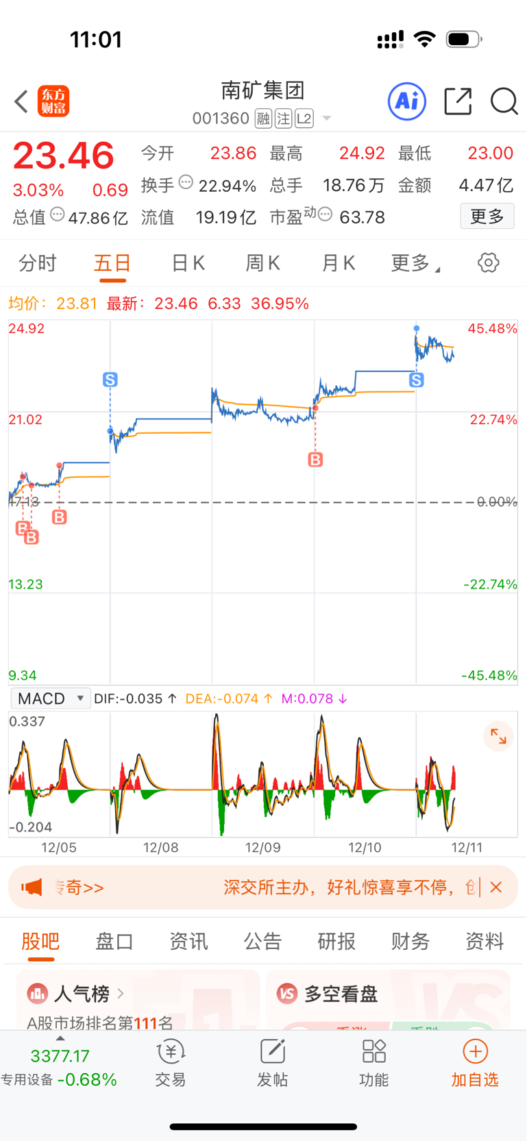 $南矿集团(SZ001360)$ 今天全部清仓,与主力同在!