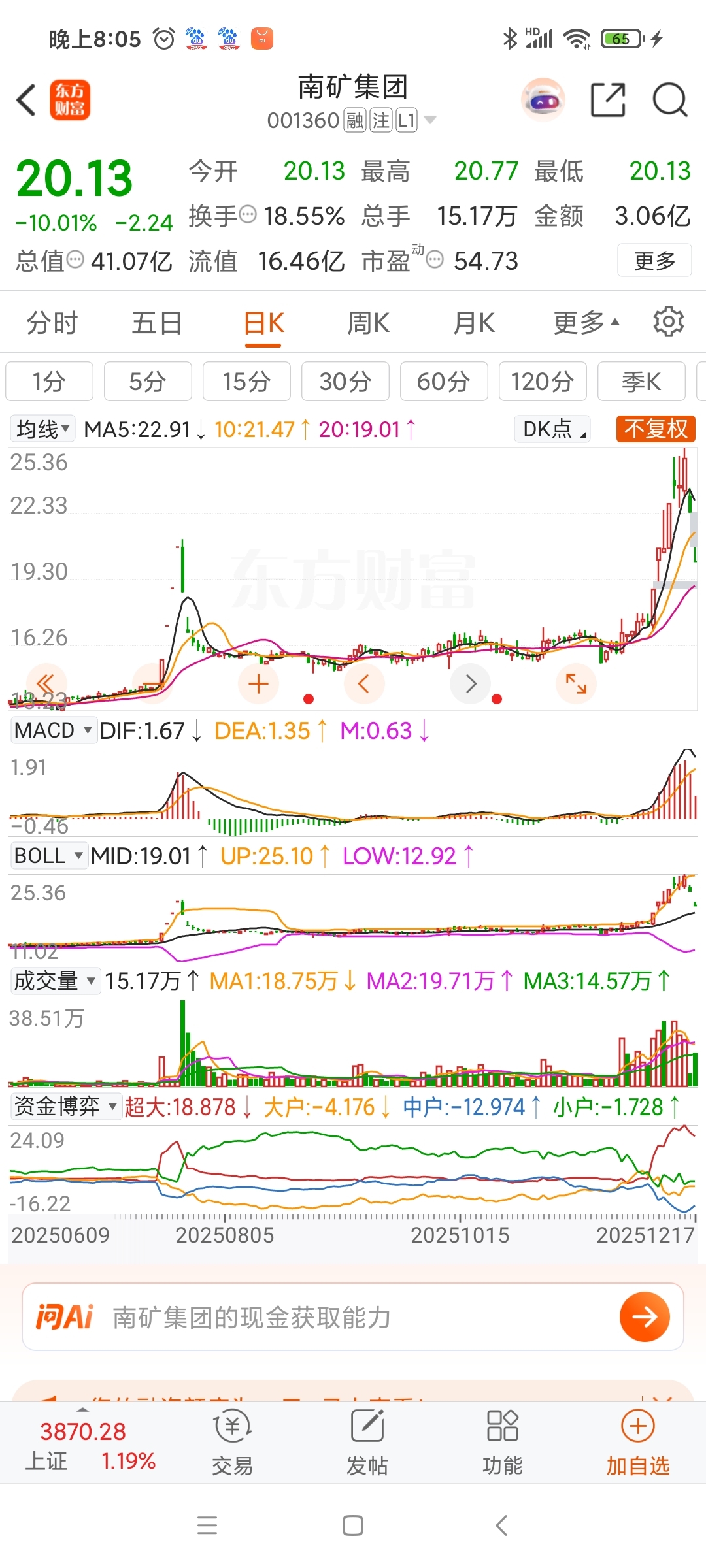 $南矿集团(SZ001360)$ 上次吃独食上来的才两个跌停,然后是小阴跌。这次充分换手还两个跌停,就不合理啊,只能说明是洗盘会再上攻,极速调整完毕,然后跟随大盘的脚步冲高